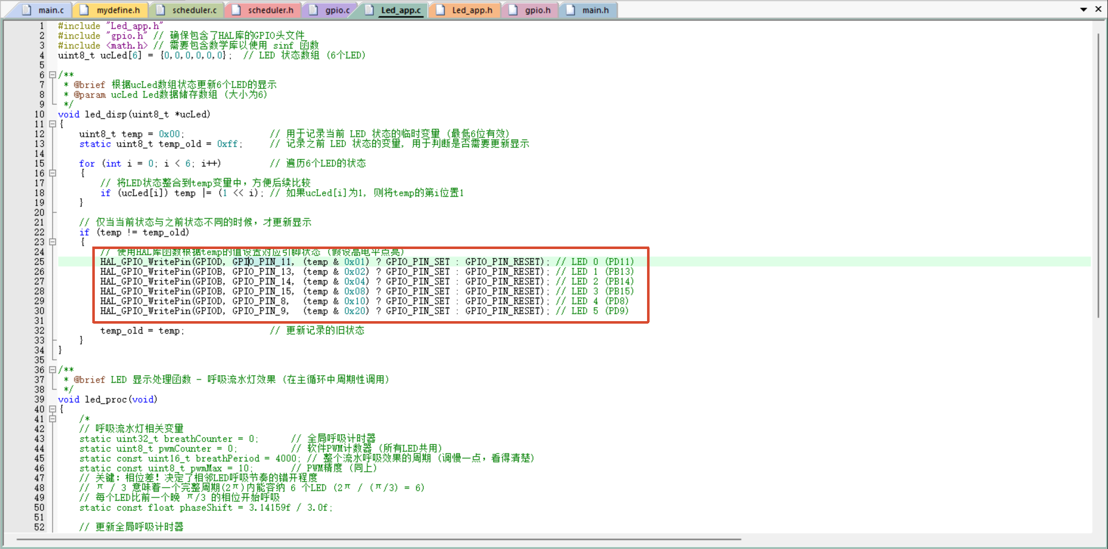 // 所有LED的状态都计算完毕后,统一调用 led_disp 更新GPIO