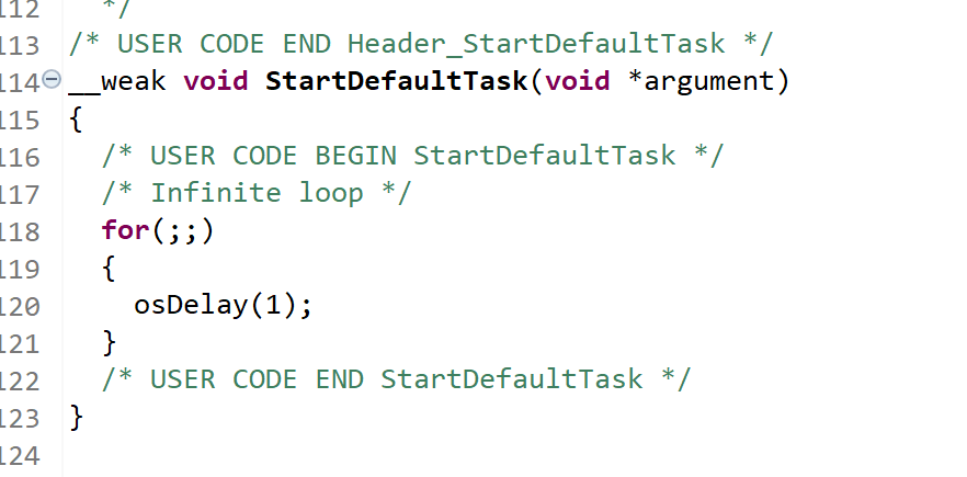 还附带有一个初始任务函数,熟练者为了便于管理、初学者为了更好的学习,都不会用cubemx生成自己需要的信号量、线程等等,而是在自己创建的文件里面手动管理,一来有良好的模块化和高度封装性,二来也方便后续添加任务之后作修改,那么系统生成的那个任务函数我一般用来进行初始化(硬件初始化和外设内部RTOS线程等对象的创建)操作,原因: