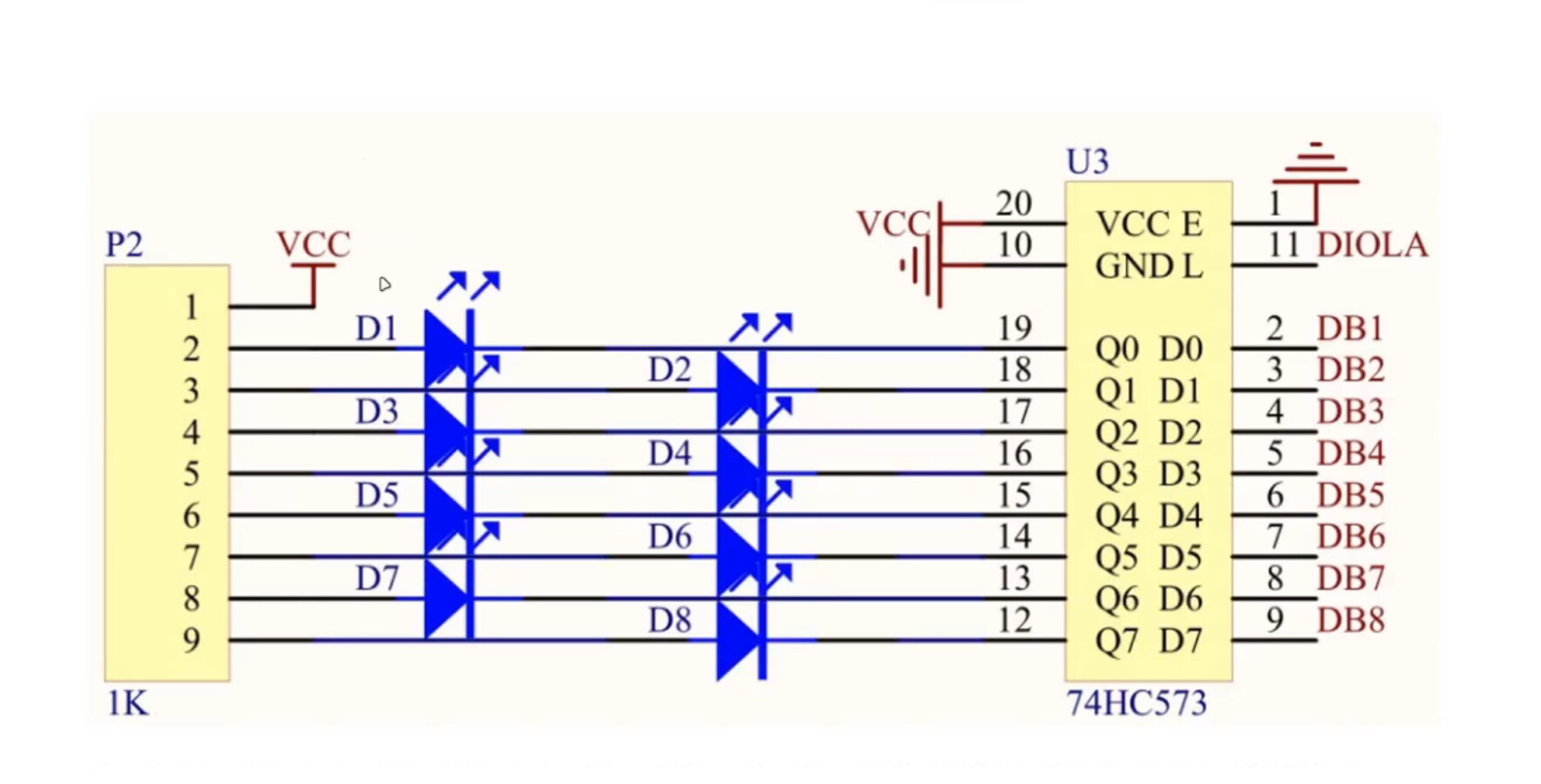 当你把总水阀(P1口)打开(输出低电平0),水流(电流)从自来水厂(VCC)→ 水龙头(LED)→ 总水阀(P1口)→ 下水道(GND),水龙头就亮了!