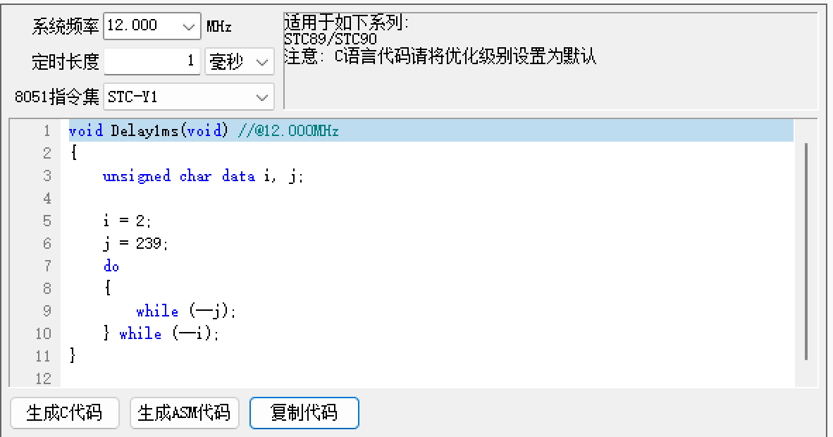 系统频率:12MHz(告诉它单片机跑多快)