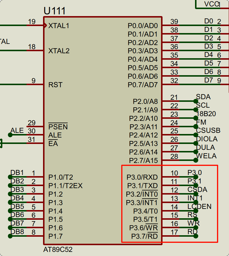 图 1 独立按键原理图 图 2 矩阵按键原理图 图 3 引脚参考图- 由原理图知,P3_4-P3_7控制独立按键、P3_0-P3_7控制矩阵按键。