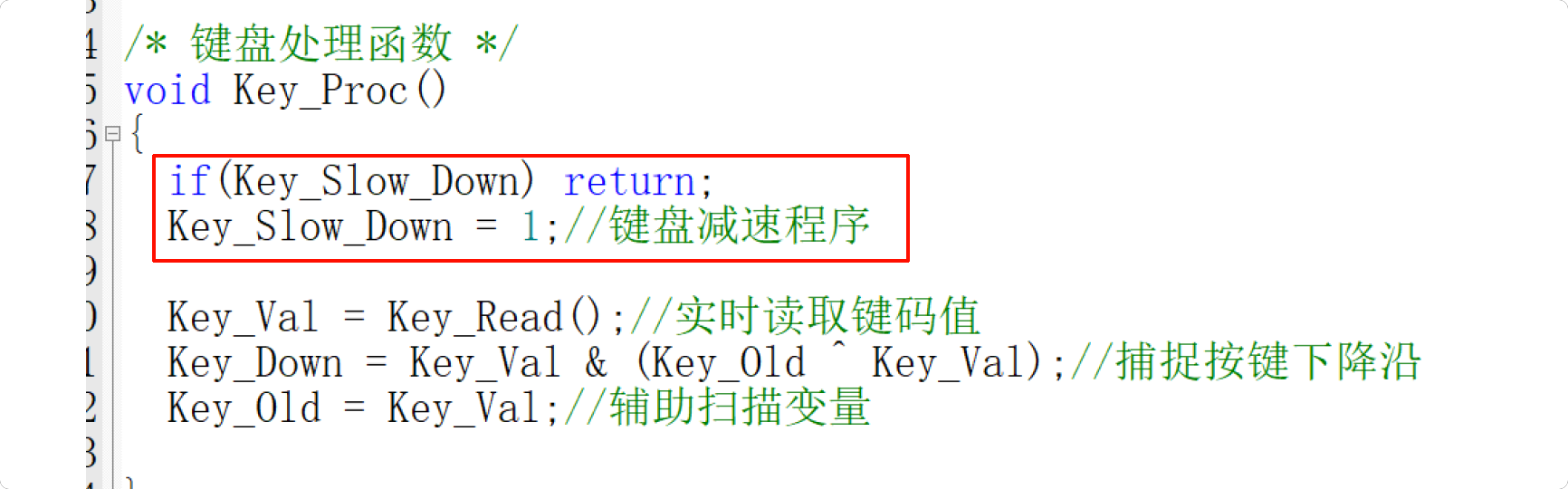 if(Key_Slow_Down) return;这行代码的意思是:“如果不是我的工作时间,我立刻退出,不占用CPU。”