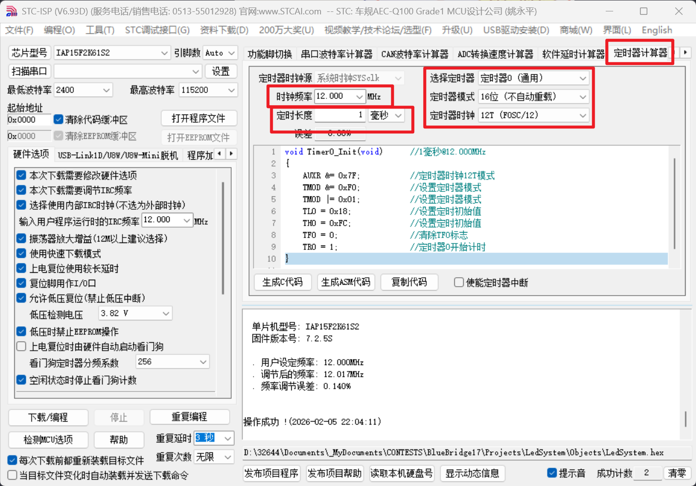 CT107D开发板采用STC IAP15F2K61S2芯片。打开STC-ISP,选择Keil 仿真设置,选择单片机型号为IAP15F2K61S2,按下添加型号和……即可。