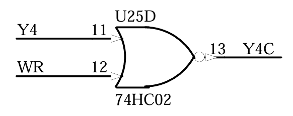 要使 LE 为1,需要 Y4C 为1,又 WR 为0,需要 Y4 为0,即选中 Y4 ,使其低有效。