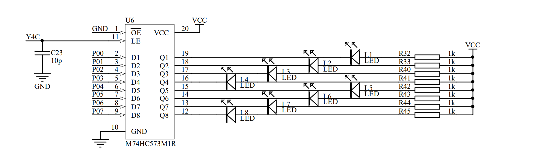 若使L1亮则P00=0,然后使能LE抬高,寻找Y4C