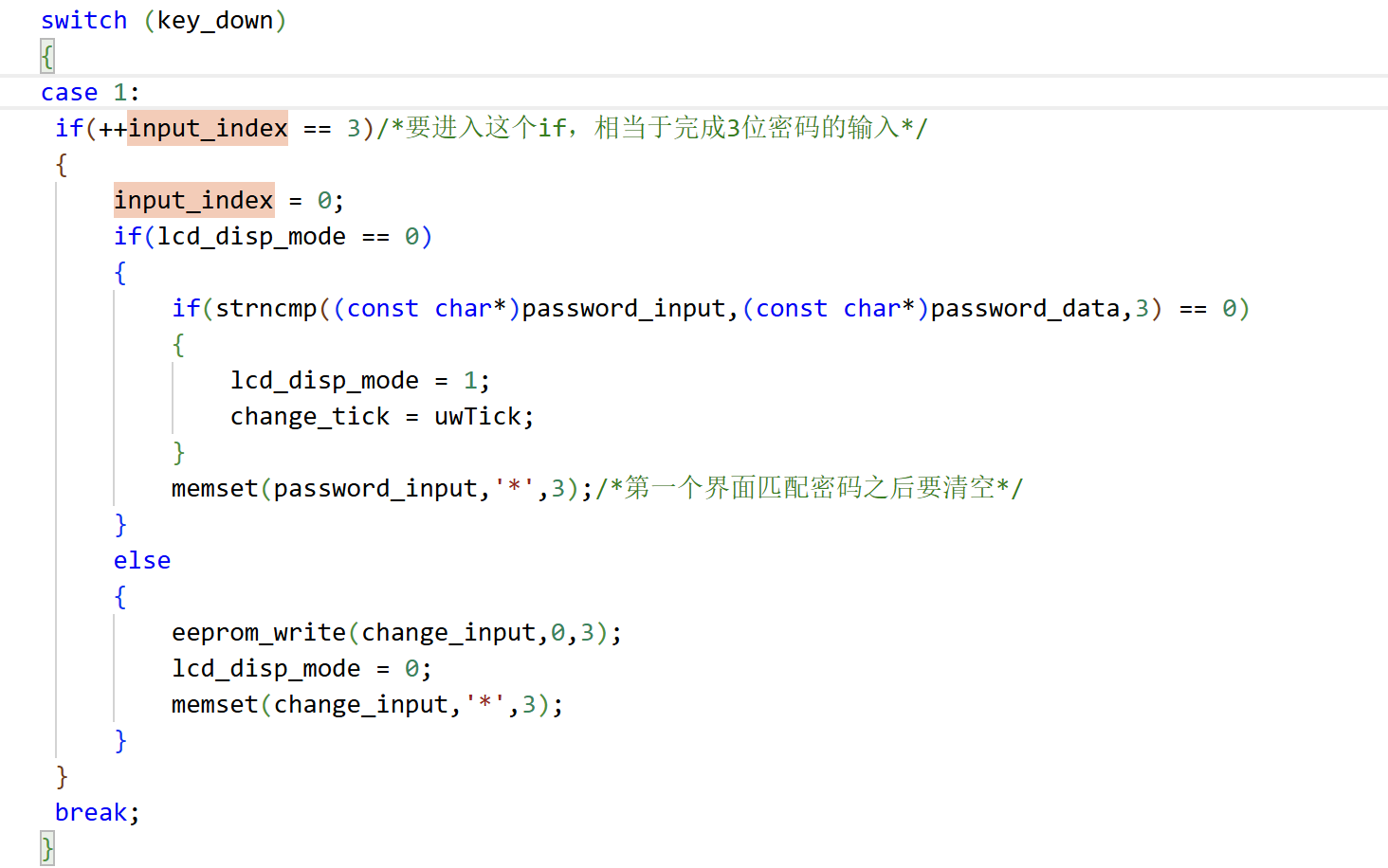 三位修改密码值输入完成,则将密码值修改成功,同时对当前密码值进行存储,并返回到输入界面。