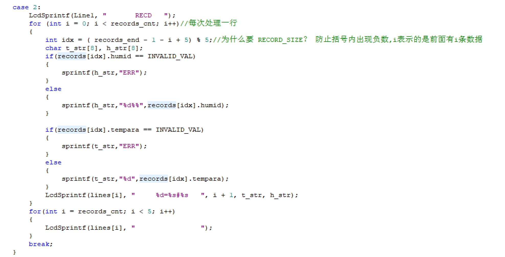 b.用循环来处理显示,首先定义行数的数组 for循环,每次处理一行,如果i大于等于有效数据条数,说明i以及往后的行数都是空的,对于有数据的行,分为前半部分和后半部分都用sprintf格式化处理字符串,在循环最后正常拼装,然后打印出来